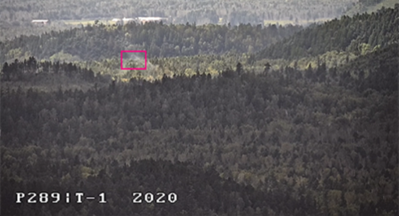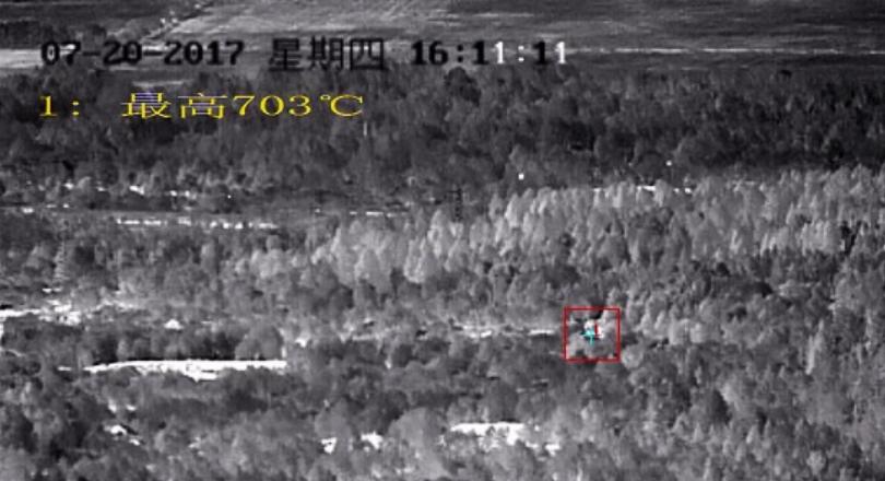 云臺實現(xiàn)了煙火的實時動態(tài)檢測,相對后端檢測的形式,提升了檢測效率,發(fā)現(xiàn)目標(biāo)更快速更準(zhǔn)確,規(guī)避由于遠(yuǎn)距離傳輸圖像延時、丟失帶來的漏檢。同時還可設(shè)置煙火屏蔽區(qū)域以及利用可見光進(jìn)行火情的清晰確認(rèn),利用可見光的同軸定位功能,無偏離同步定位查看細(xì)節(jié),同時,可見光可自動調(diào)整倍率快速聯(lián)動跟蹤,確認(rèn)火點。實測中,熱成像火點后,可見光立即同步調(diào)整與變焦,將火點區(qū)域置于畫面中心。