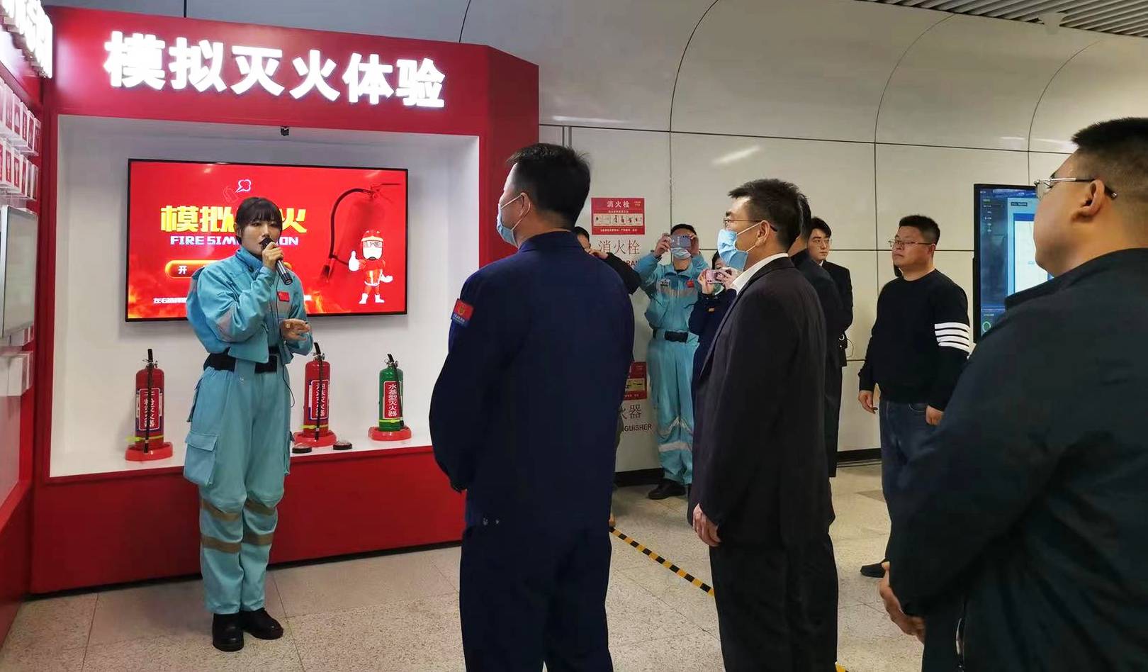 在驗收工作現場,地鐵運營公司配備了滅火模擬演練裝備,對新入職站點員工和專職消防安全工作人員進行了模擬真實火災現場滅火救援培訓,使新入職站點員工掌握滅火器材的正確使用方法和消防安全實操技能,確保在發生火情時,站點員工具備隱患排查、初期處置、組織逃生和宣傳教育的“四個能力”。