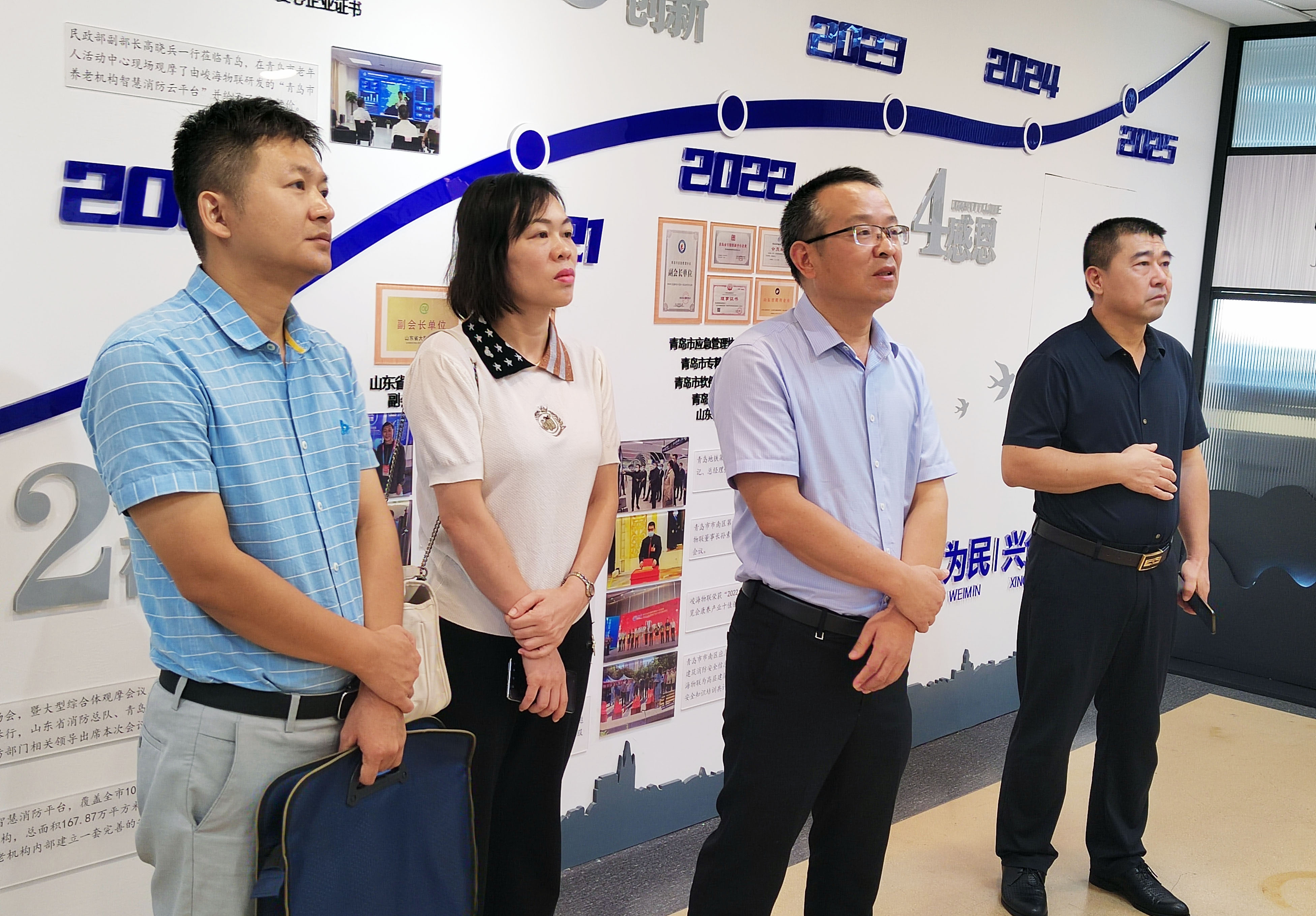 8月21日,廣西柳州市民政局、柳州市養(yǎng)老服務(wù)促進(jìn)中心領(lǐng)導(dǎo)及相關(guān)部門(mén)人員一行,在青島市民政局相關(guān)領(lǐng)導(dǎo)的陪同下,蒞臨青島峻海物聯(lián)調(diào)研考察。市應(yīng)急協(xié)會(huì)副會(huì)長(zhǎng)孫素朋先生等領(lǐng)導(dǎo)陪同接待,就企業(yè)的發(fā)展歷程、業(yè)務(wù)運(yùn)營(yíng)情況以及核心研究成果作了整體介紹。