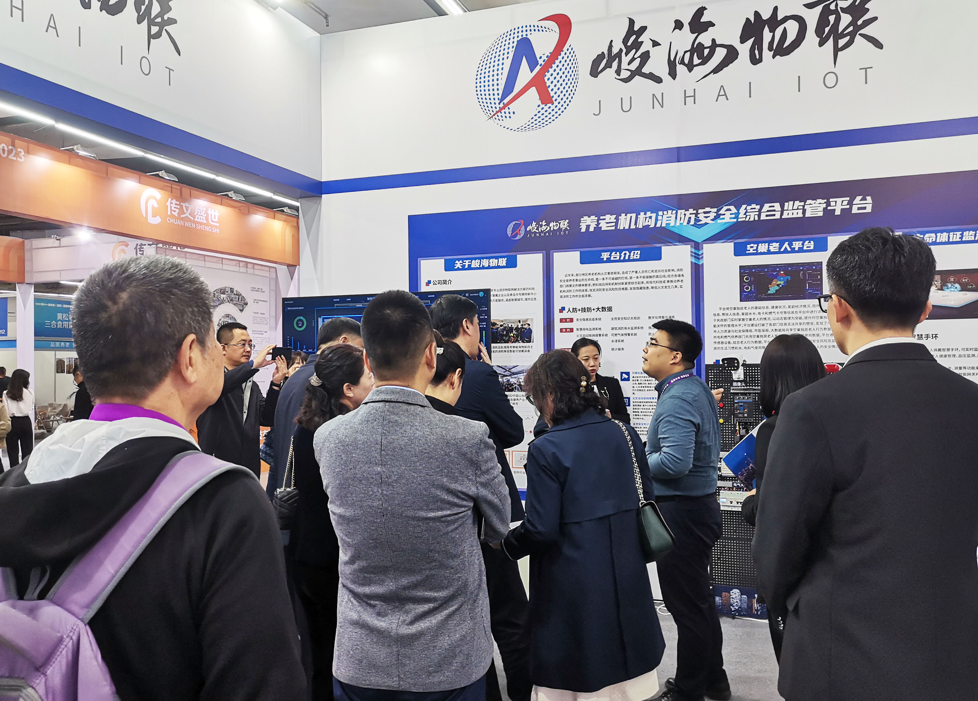 展會現場,來自全國各地的民政機構與養老服務企業觀摩與咨詢了解峻海物聯智慧養老安全管理平臺。