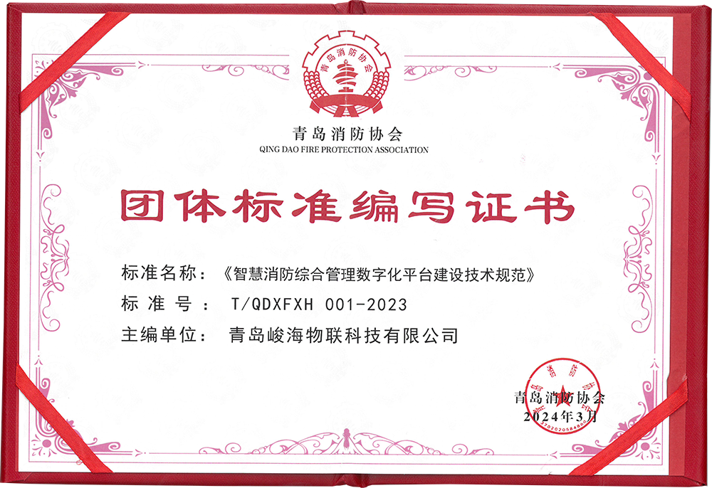 峻海物聯作為《智慧消防綜合管理數字化平臺建設技術規范》團體標準的主導發起單位,積極牽頭為青島市智慧消防行業的可持續發展貢獻力量。