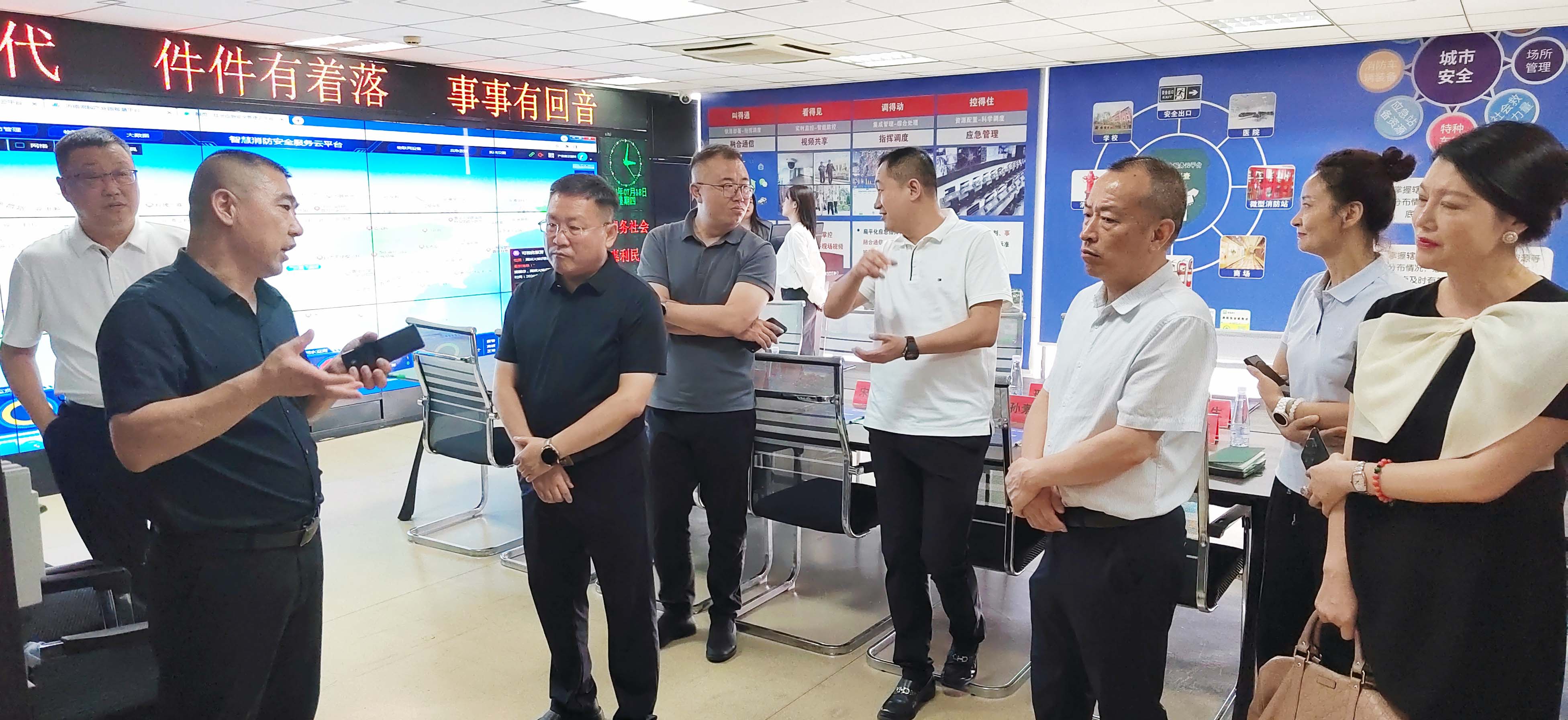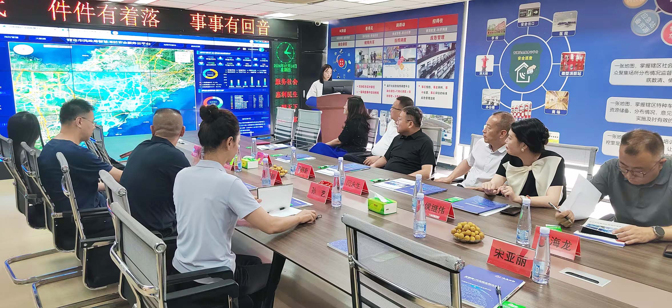 7月19日下午,新疆烏魯木齊市水磨溝區區委書記邢保新帶隊蒞臨峻海物聯調研,水磨溝區委常委閆永生、政協副主席郭晨、科技局黨組書記兼局長侯繼偉、招商服務中心主任劉海霞、辦公室副主任司海龍、青島市應急管理協會副會長孫素朋和峻海物聯總經理孫藝等人員陪同調研。