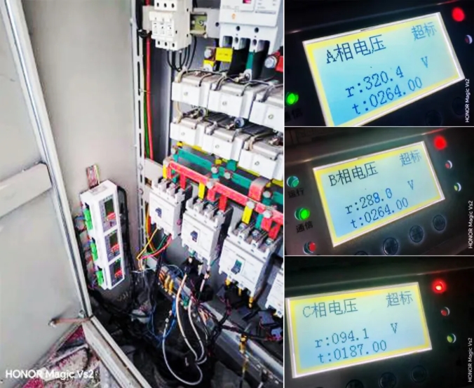 在電業局工作人員的配合下,運營工程師找到了該起隱患所在:是因托養院后院入戶電纜前端變壓器接地線損壞,導致入戶電壓升高和缺相嚴重超出標準閾值范圍。所幸發現及時,未造成火災事故和人員傷亡。