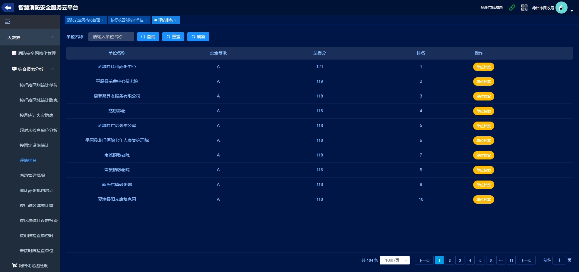 三是智慧消防平臺自動對全市養老機構消防安全管理情況進行綜合評分,形成不同等級,民政部門根據評分等級兌現獎懲措施,實現敦促后進、正向激勵,為管理者提供工作統計、數據考評和輔助決策等功能,實現消防工作數字化升級。( 通訊員/宋亞麗 李霞 組稿/笑丁)