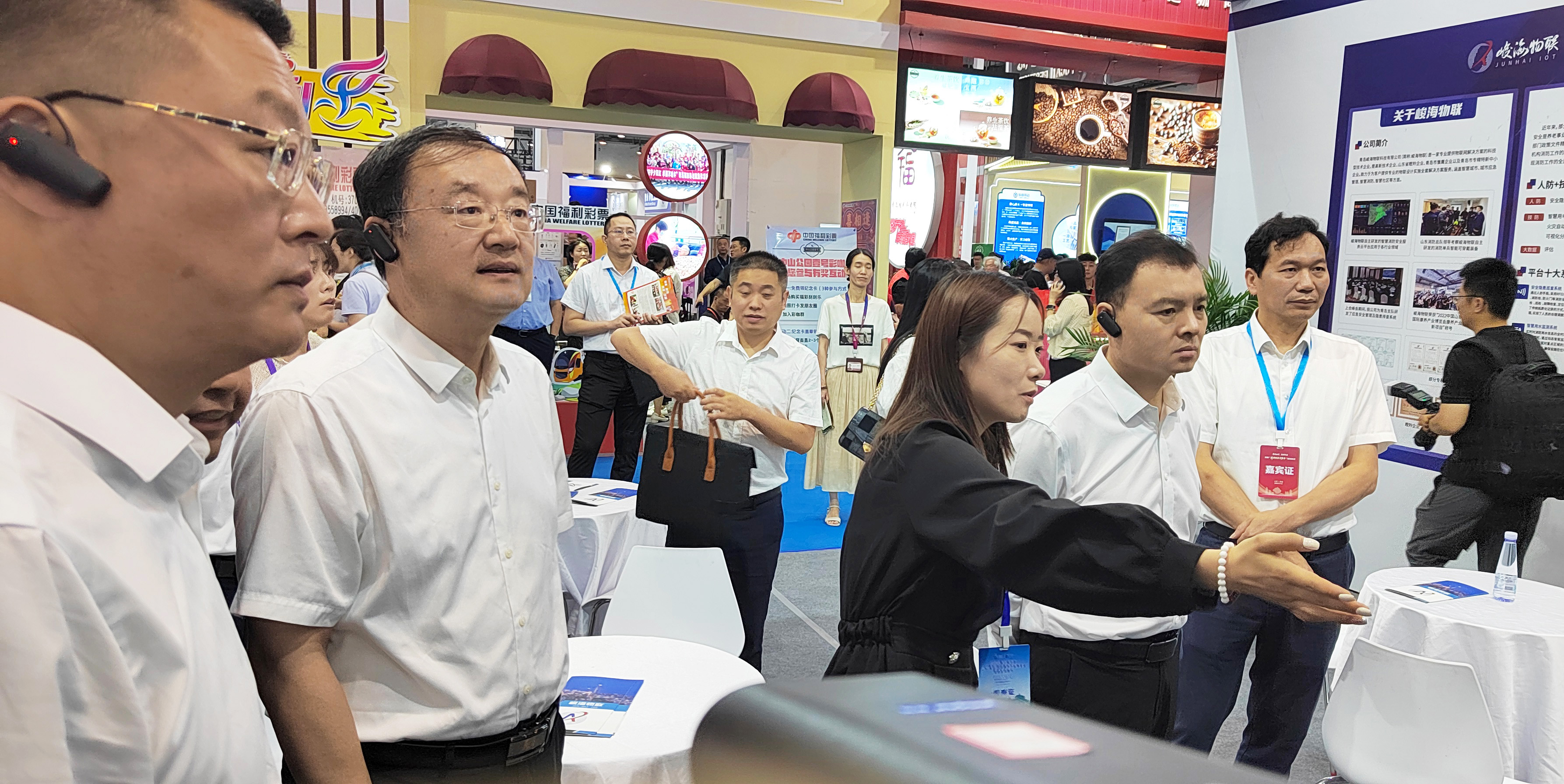 10日上午,民政部副部長劉振國在山東省民政廳廳長莊嚴(yán)、青島市民政局局長江聯(lián)軍等人員的陪同下蒞臨峻海物聯(lián)展位巡視。