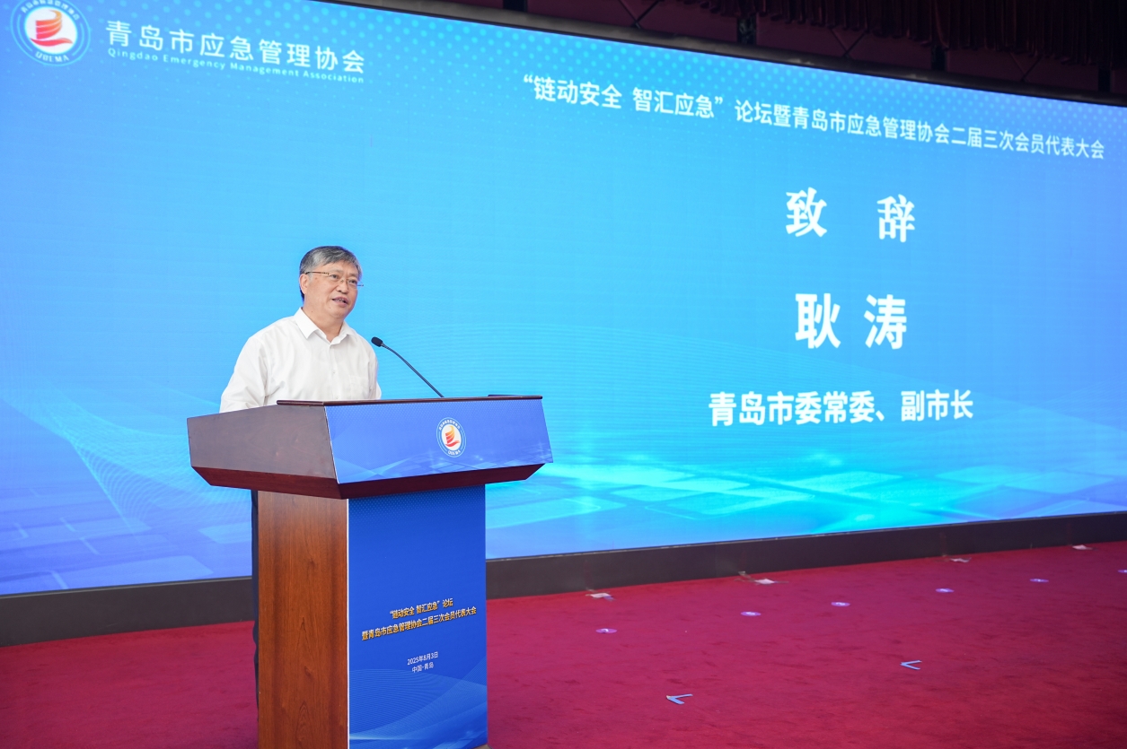 在“鏈動安全、智匯應急”論壇上,青島市委常委、副市長耿濤表示,安全是青島發展的前提,要以數字賦能為核心,構建城市安全風險“智能大腦”;他希望青島市應急管理協會要繼續發揮好橋梁紐帶作用,推動產業共治、市場引領。