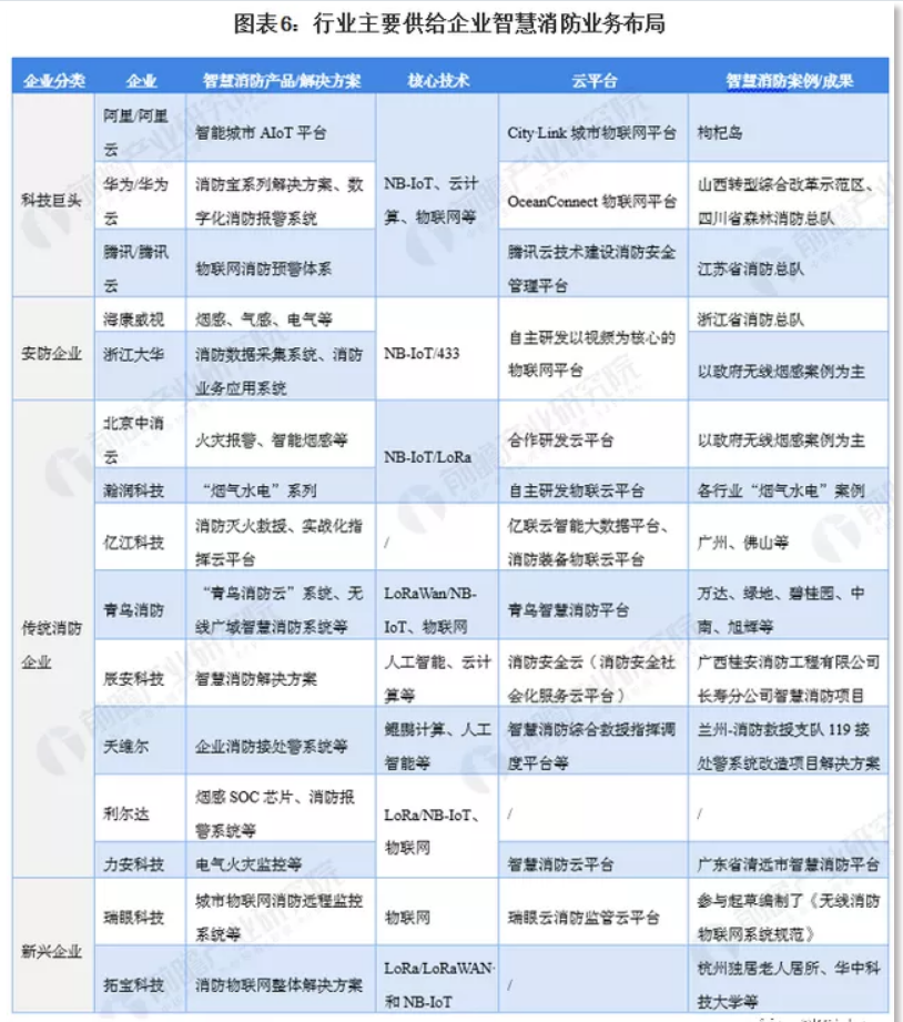 當前,智慧消防已經成為整個消防產業的主流與風口,消防產業對于新技術的需求,也讓眾多科技企業加入智慧消防布局。智慧消防市場存在四大玩家:傳統消防企業、安防企業、科技巨頭、創業公司。