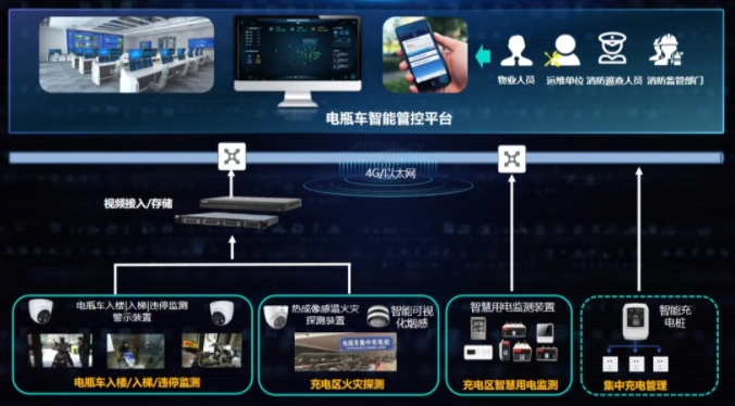 4.管理平臺(tái)。峻海物聯(lián)采用安消一體機(jī)平臺(tái),功能模塊化部署,具備視頻監(jiān)控系統(tǒng)管理模塊,對(duì)前端攝像機(jī)、網(wǎng)絡(luò)硬盤(pán)錄像機(jī)等設(shè)備進(jìn)行統(tǒng)一視頻管理和報(bào)警管理,可支持大量高清攝像機(jī)實(shí)時(shí)顯示、云臺(tái)控制,錄像操作、回放等功能。同時(shí),可通過(guò)手機(jī)APP進(jìn)行電瓶車入梯事件的遠(yuǎn)程預(yù)警接收。